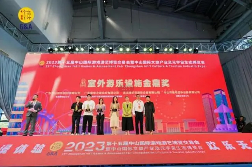 熱烈慶祝連云港長和游樂設備有限公司榮獲室外游樂設備金鼎獎,10月13日,2023年“金鼎獎”評選活動頒獎儀式在第十五屆中山國際游戲游藝博覽交易會(簡稱中山游博會)上舉行,15個優秀產品/項目分獲室內游樂設備金鼎獎、室外游樂設施金鼎獎、文旅規劃設計金鼎獎、數字文化產品金鼎獎。?